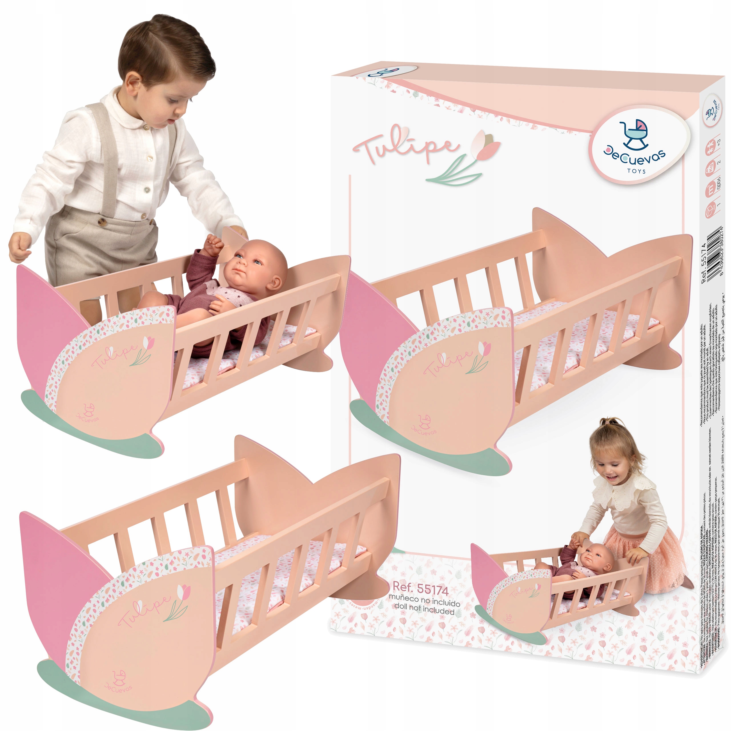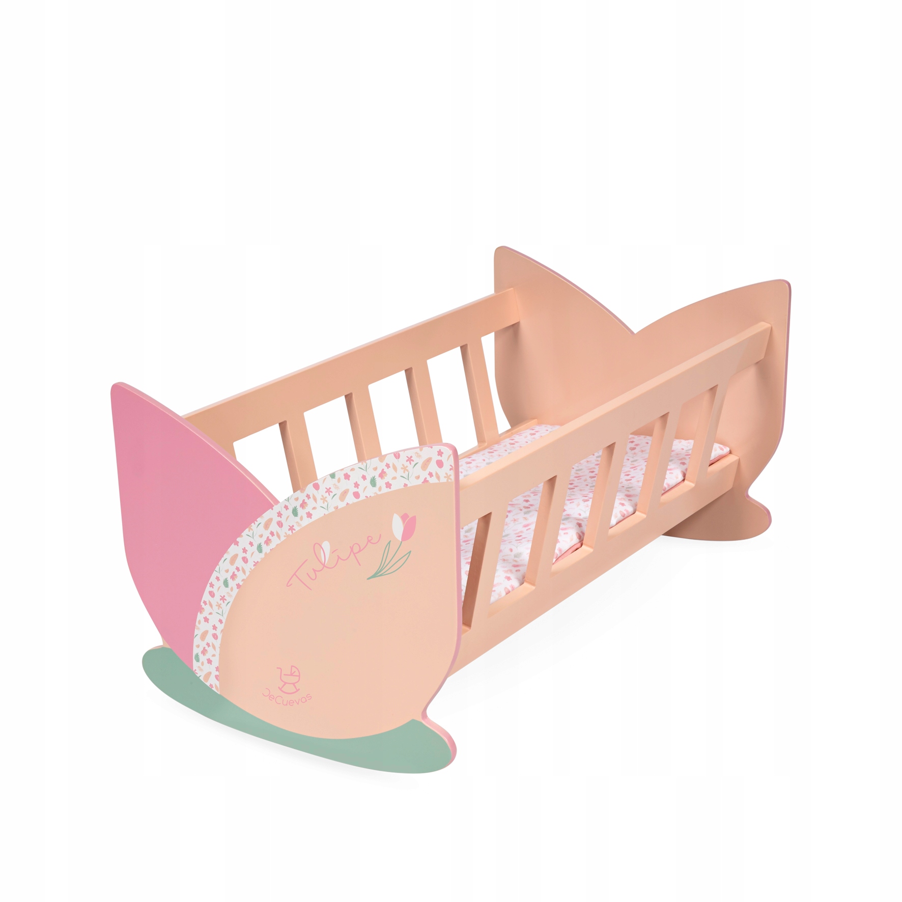 Kołyska dla lalek posiada wyjątkowy design w formie tulipana.