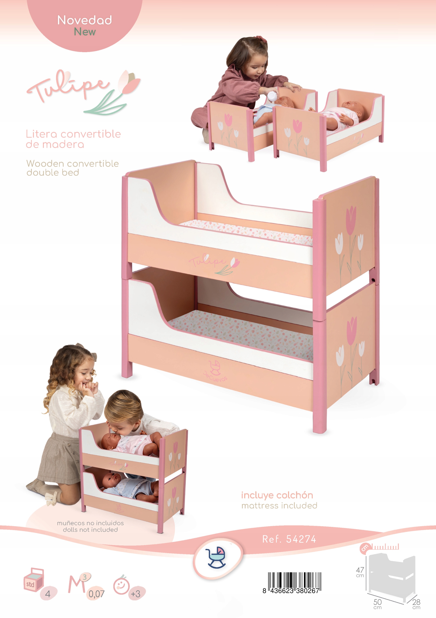 Rozkładane drewniane łóżeczko piętrowe DeCuevas Toys 54274 |