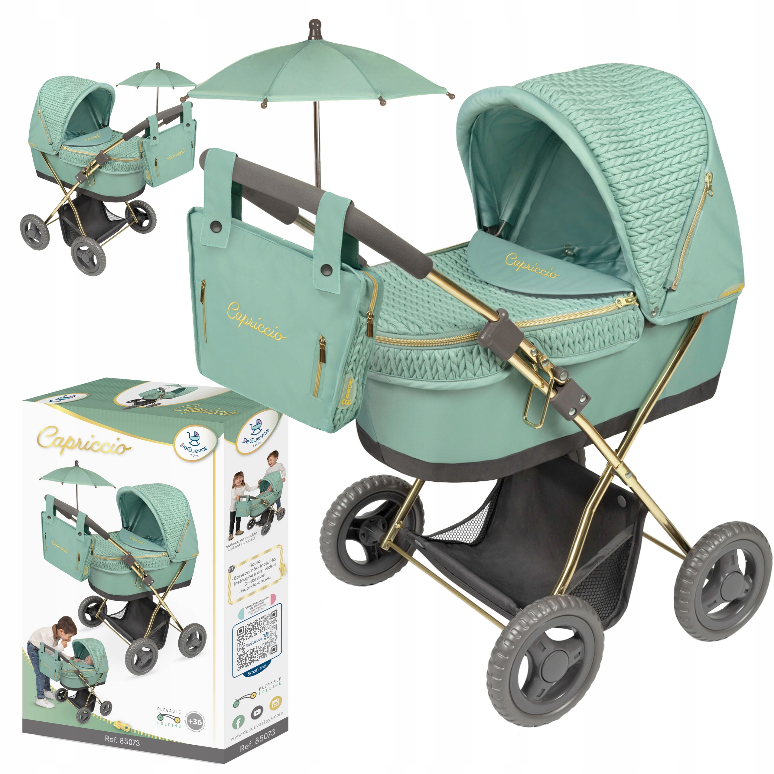 Wózek dla lalek Capriccio marki DeCuevas + Torba + Parasolka